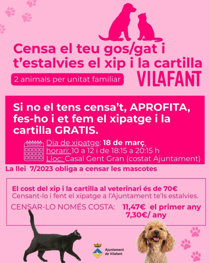 L’objectiu és facilitar que els veïns i veïnes puguin censar els seus gossos o gats i posar-los el microxip i la cartilla de manera gratuïta, sempre que prèviament els inscriguin al cens municipal.